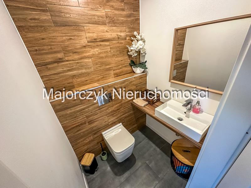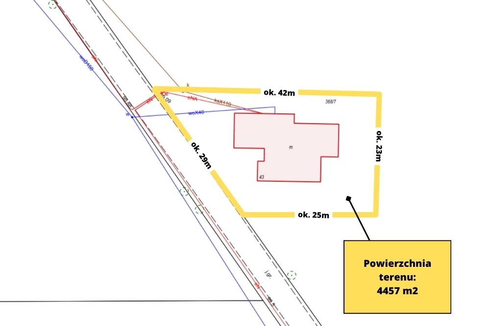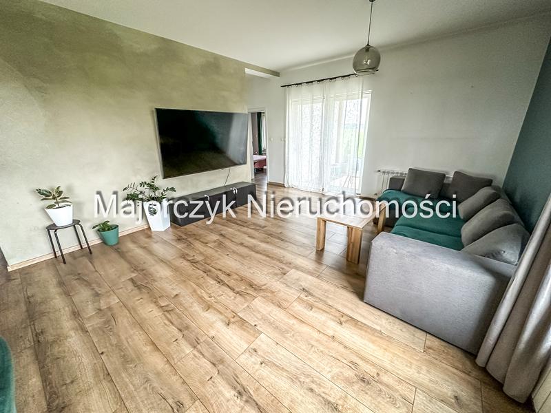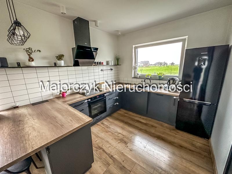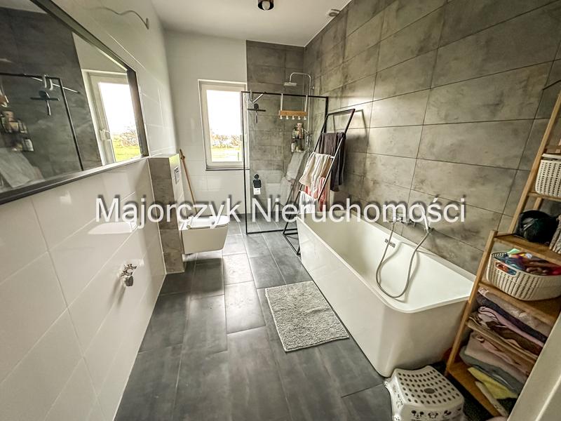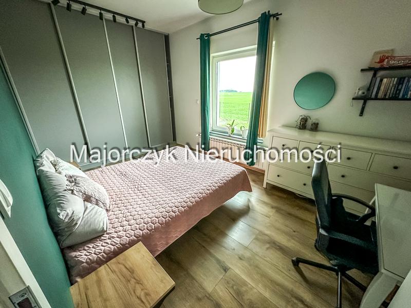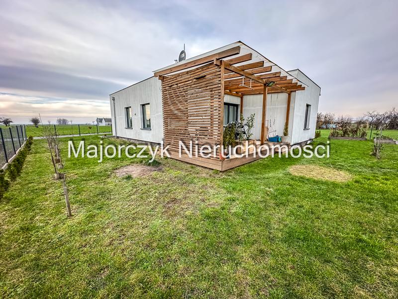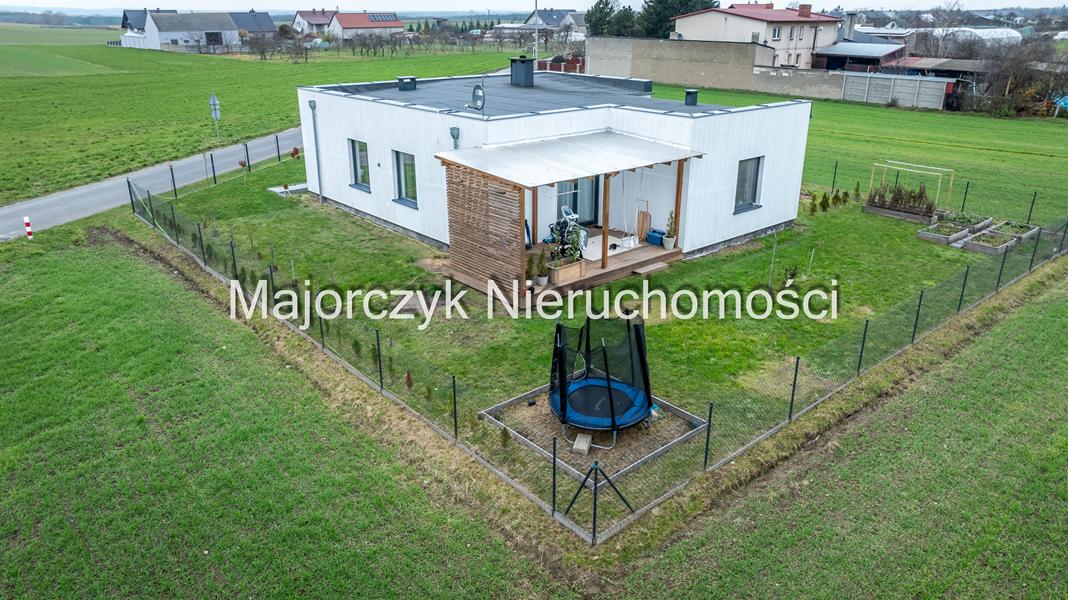 Budynek z 2020r., umeblowany. W bryle znajduje duży garaż, umożliwiający prowadzenie działalności gospodarczej lub przerobienia na dodatkową powierzchnię mieszkalną. Konstrukcja budynku umożliwia jego nadbudowę o drugą kondygnację. Istnieje również możliwość znacznego powiększenia działki o przylegający wokół teren.