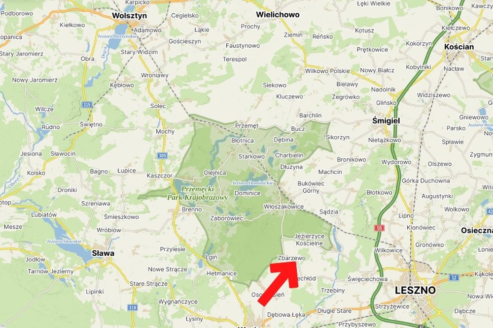 –  zaledwie 14 km od Leszna i 11 km od Boszkowa