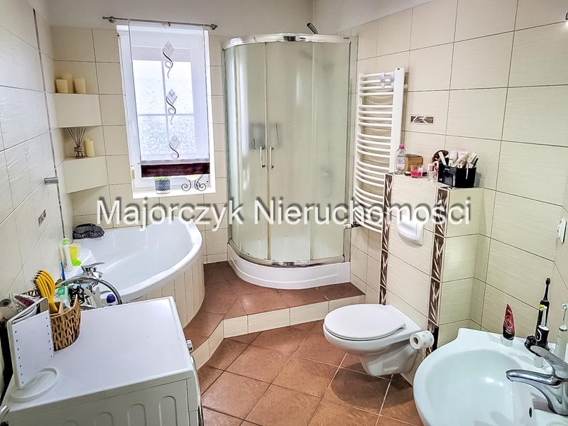 – łazienka z wanną, prysznicem i miejscem na pralkę