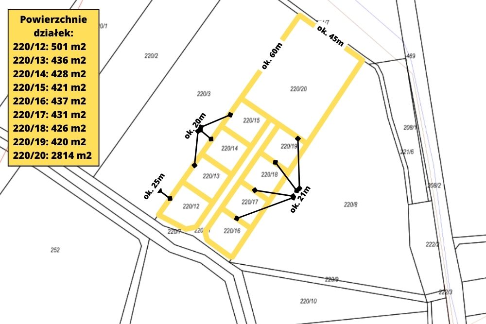 – działka nr 220/20 – pow. 2814 m2 – cena 196 900 zł