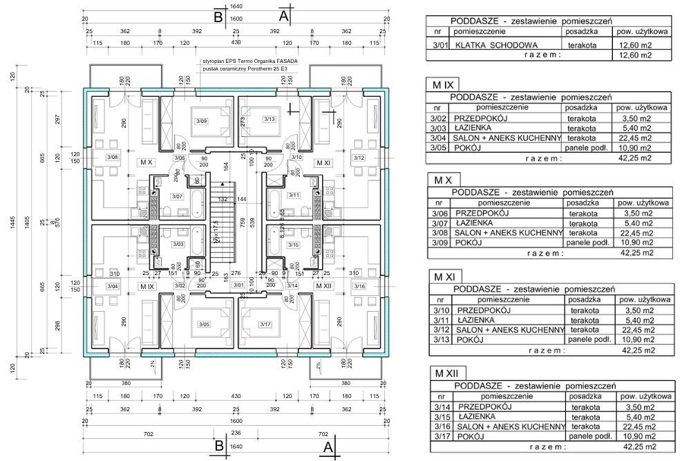 Zestawienie kondygnacji i powierzchni mieszkań: