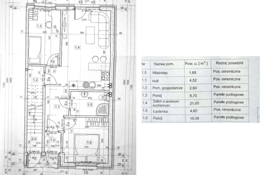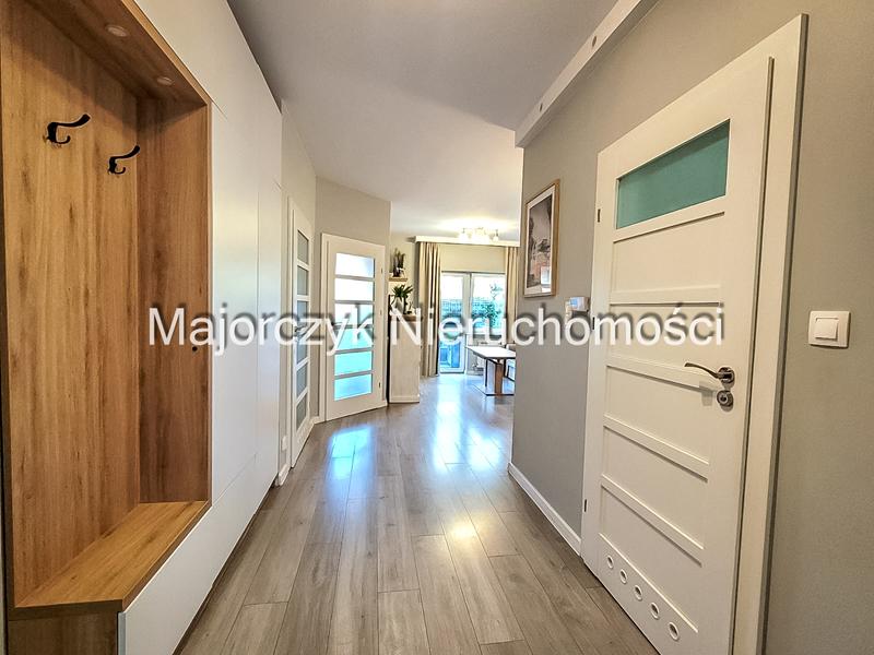 – salon, aneks kuchenny, 2 sypialnie, łazienka, pomieszczenie gosp., przedpokój i wiatrołap